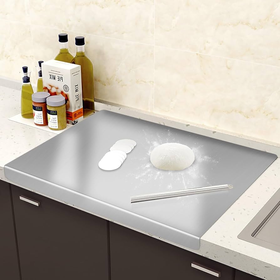 - 【FOOD-GRADE MATERIAL】- Made from premium 304 stainless steel, the food-grade cutting board guarantees the safety of food contact. Its durable and reusable design adds long-lasting value to your kitchen essentials.PLEASE NOTE THAT Remove the surface film before use.