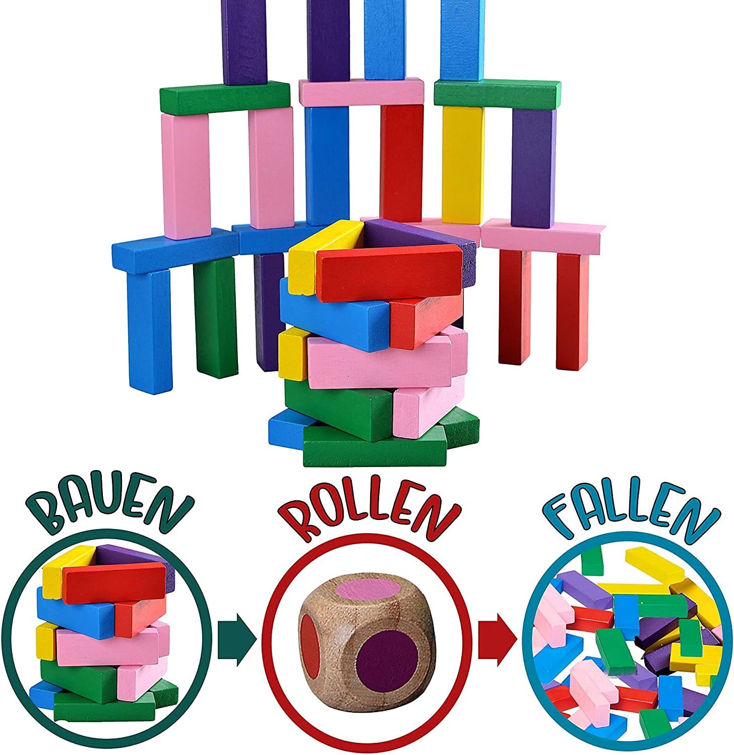 JENGA 45 PCS wooden block to build a tower with 2 Dice Stacking Multicolor
