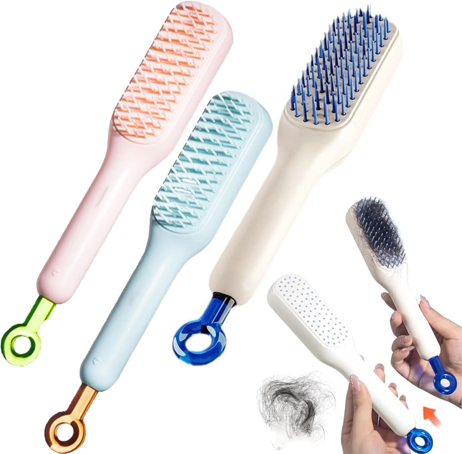 Self Cleaning Hair Brush, One-Click Cleaning Telescopic Hair Comb, Anti-Static Telescopic